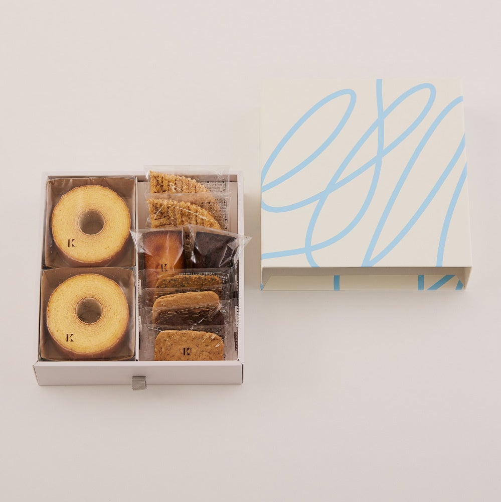 きのとや自慢のバームクーヘンをはじめ、発酵バターを使ったフィナンシェやクッキーなど自慢の美味しさをバラエティー豊かに詰め合わせました。