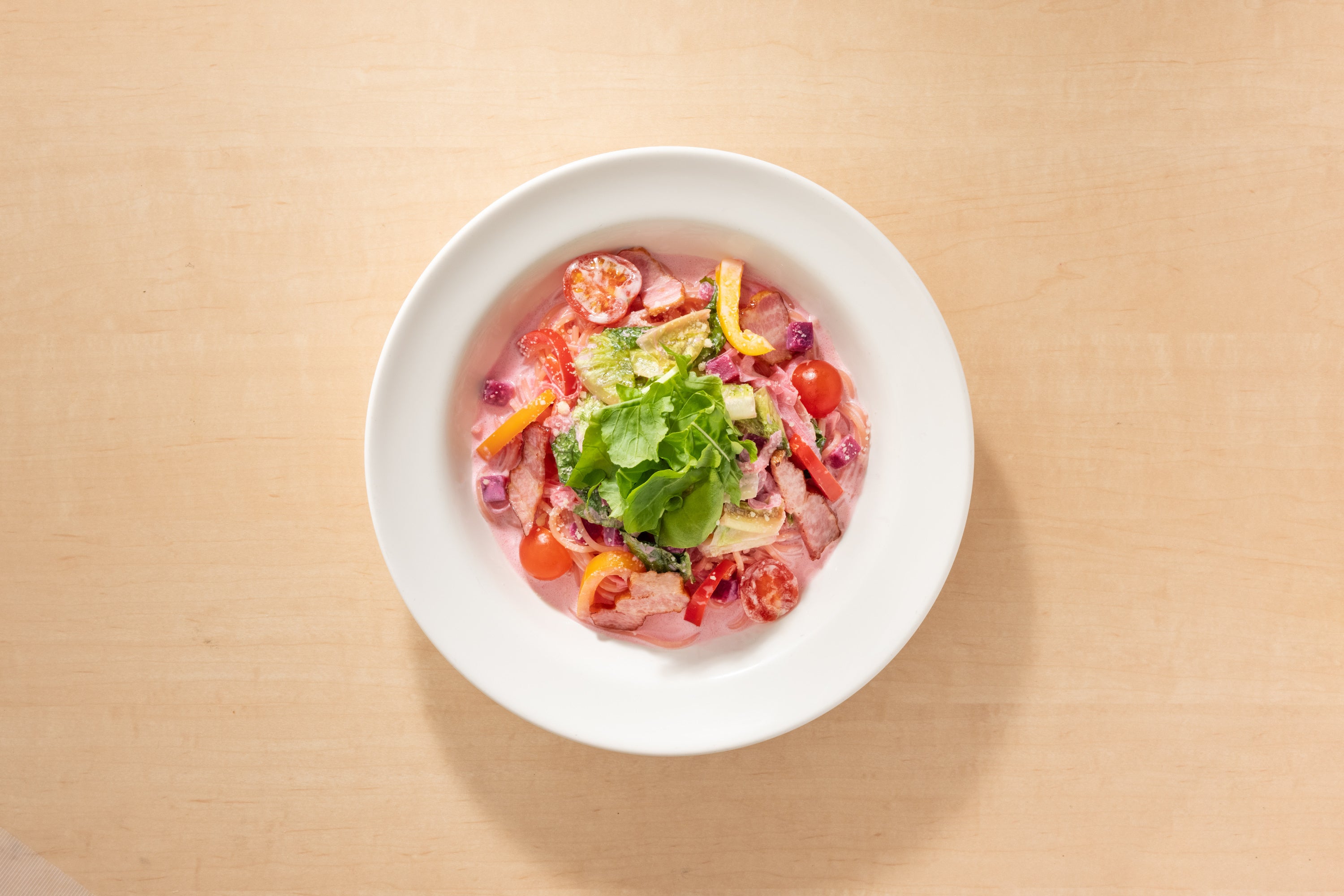 色鮮やかなビーツのクリームパスタ。ビーツは“奇跡の野菜”といわれるほど、栄養素が豊富。特にビーツに含まれる赤色成分「ベタシアニン」は抗酸化作用があり、体の中の活性酸素を取り除き、老化を防ぐなど様々な効果が期待されています。
