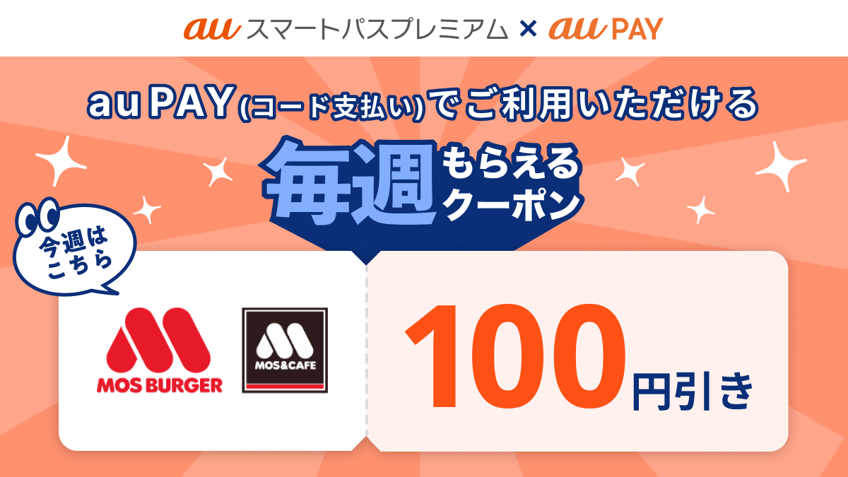 「auスマートパスプレミアム」は、日常生活でのお買い物や、映画などのエンタメにお使いいただけるおトクなクーポンをはじめ、スマートフォンをもっと快適かつ楽しくお使いいただくためのデジタルコンテンツや安心をお客さまに提供するサービスです。この度、「auスマートパスプレミアム」では、au PAY(コード支払い)でご利用いただける「毎週もらえるクーポン」として、モスバーガーで101円以上のお支払いに使える100円割引クーポンの提供を2023年2月20日からスタートします。