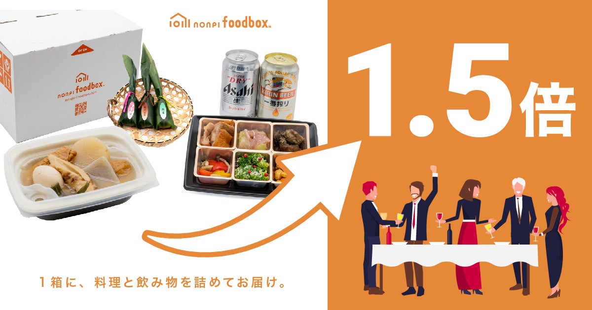 料理と飲み物を詰めたフードボックスを全国にお届けする「nonpi foodbox™」は、2020年8月のサービス開始以降5,000社80万人以上にご利用いただいています。利用シーンの多くはオンライン飲み会や、オンラインイベント用の食事です。しかし最近は、対面開催やハイブリット開催の懇親会が増え、ケータリングとしてご利用いただく割合が半年で1.5倍に増えました。こうした変化を受け「”レンジ不要”のアツアツおでん」など場所を問わず楽しめるメニューの販売も開始しました。
