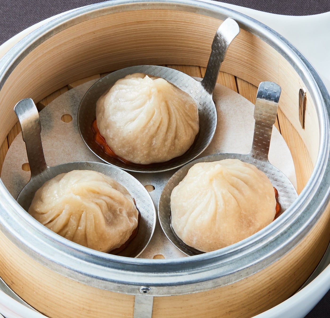 国産の豚肉に国産白菜と中華のダシを練りこんだスープたっぷりのタネを、点心師の手作りの皮で丁寧に包みました。オーダーいただいてから蒸し上げた熱々の小籠包を、赤酢と細切りのフレッシュなショウガと一緒にお召し上がりください。