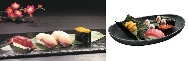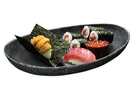 さらに、“極みの逸品シリーズ”の新商品として、贅沢に国産ネタのみを厳選した「豪華国産づくし」を販売します。北海道や岩手県といった北日本を中心に獲れた、濃厚な味わいが楽しめるウニに、高級な有明産海苔を使用した手巻き寿司、塩釜産本マグロを贅沢に使ったにぎりや細巻、北海道産建てマスいくら(※3)をたっぷりとトッピングした軍艦など、4種の豪華食材を盛り合わせた絶品の一皿です。
