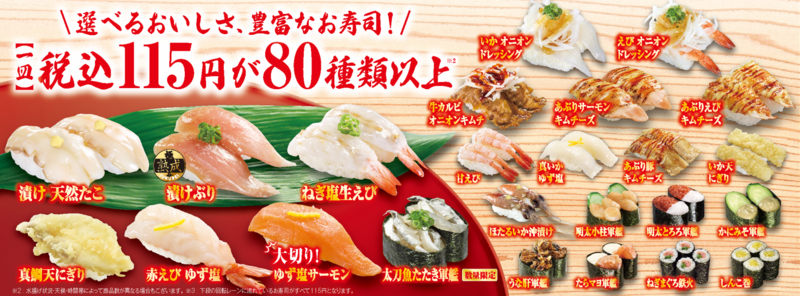 ■ 115 円 ※ メニューにもバイヤー厳選の国産ネタが多数!