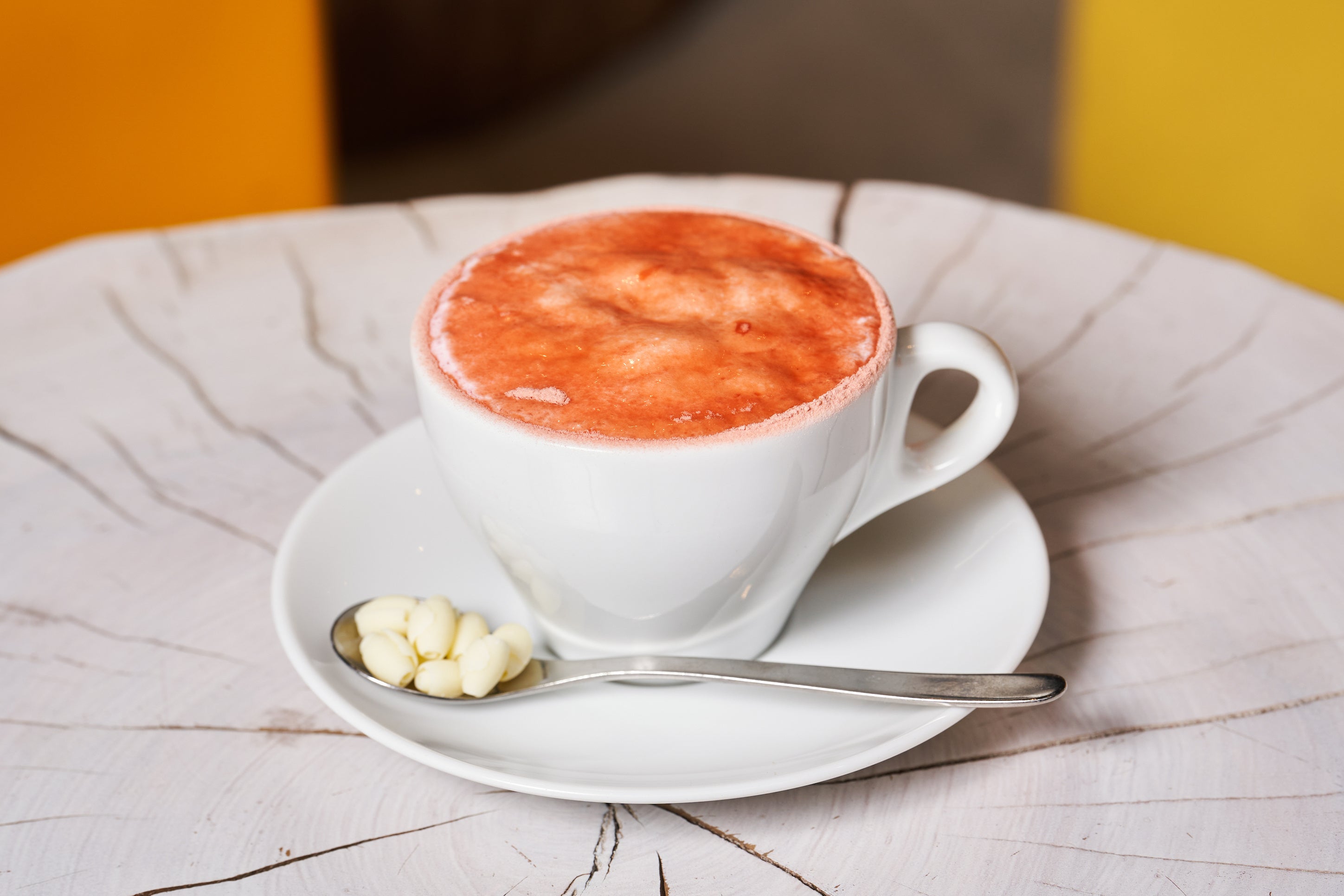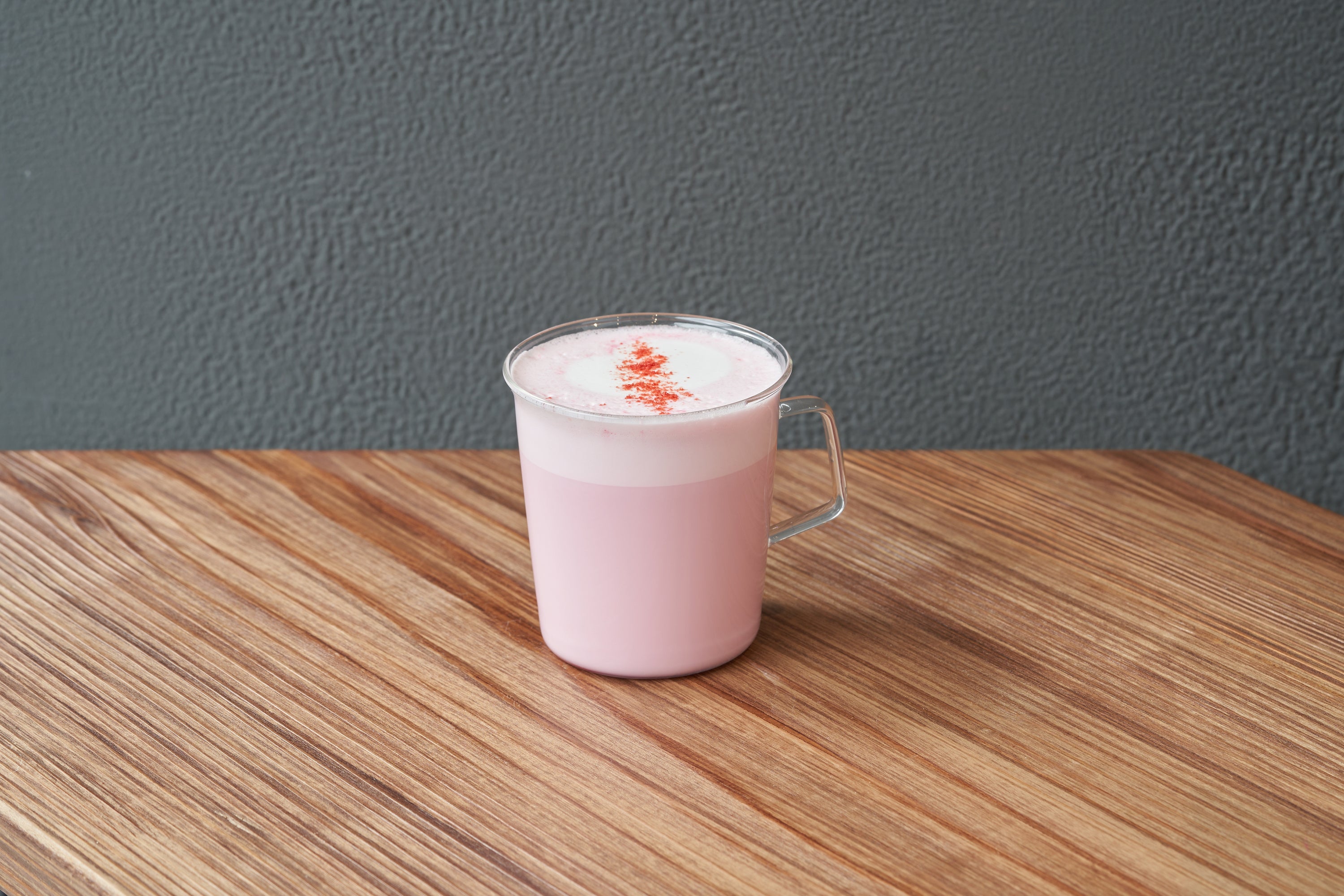 ルビーのフルーティーな甘みのチョコレート、ストロベリーシロップ、ミルクを合わせたオリジナルラテです。