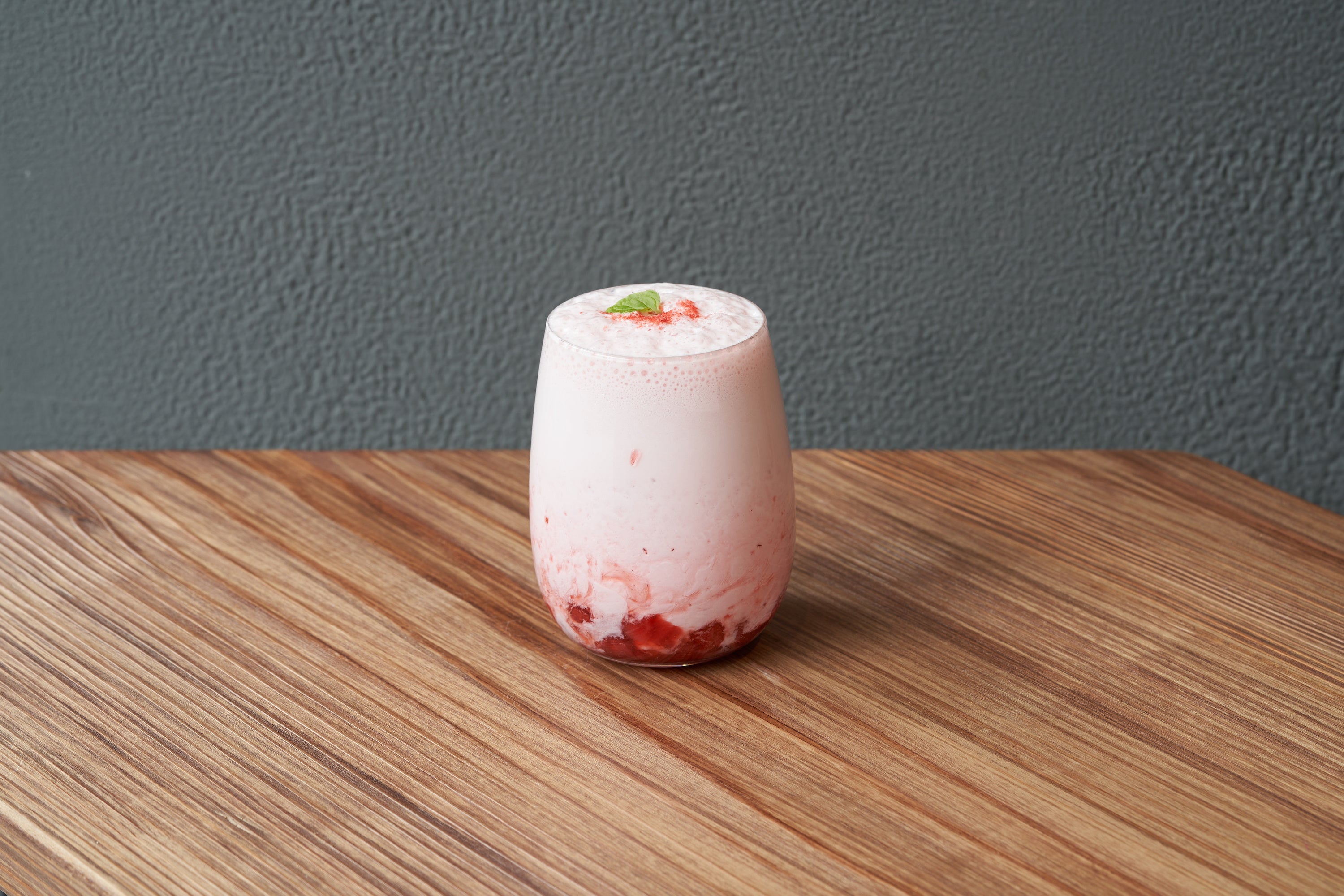 自家製の果肉入りあまおうシロップと濃厚ミルクで仕上げた贅沢ないちごみるく。