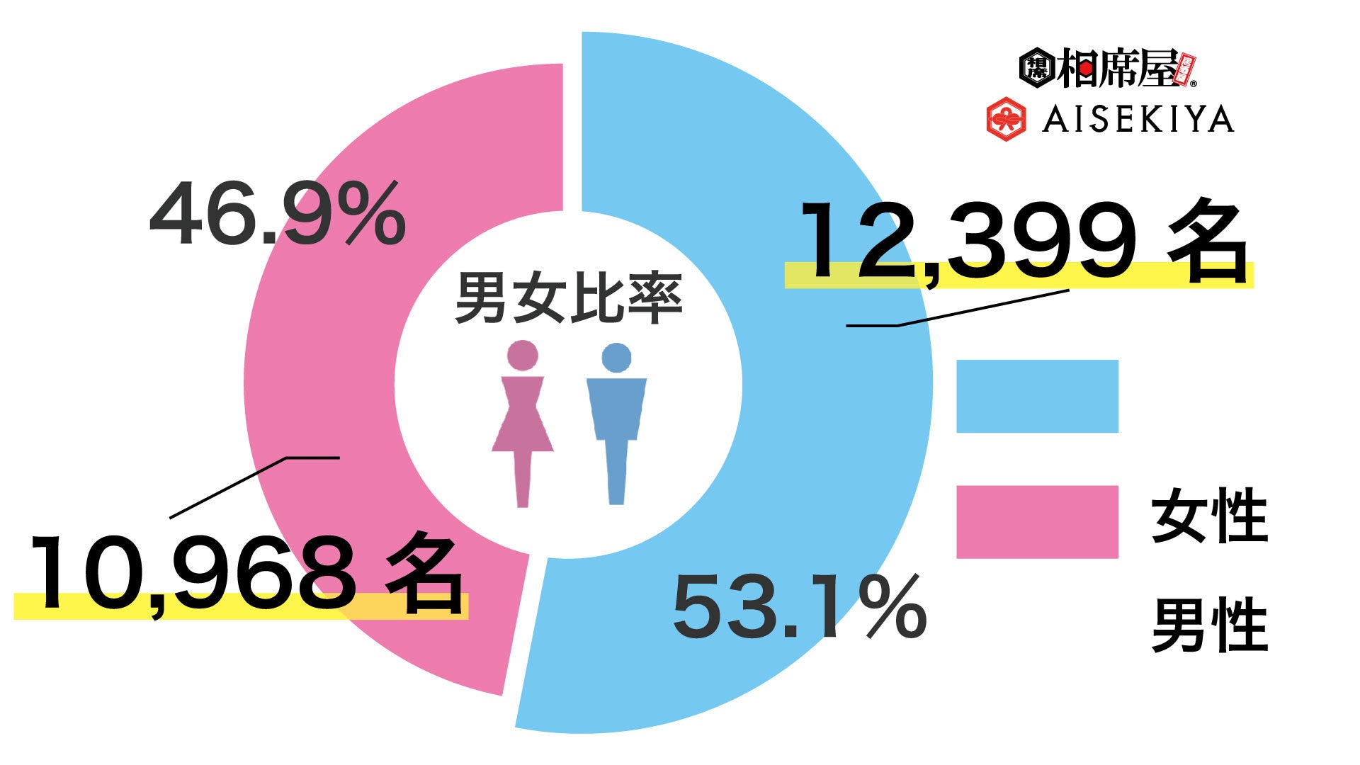 2023年1月の相席屋への男性来店数は12,399人、女性来店数は10,968人を突破。男性53.1%、女性46.9%でした。また、男性来店数のうち初めて来店した男性は3,733人、2回以上来店した男性は8,666人、女性来店数のうち初めて来店した女性は3,210人、2回以上来店した女性は7,758人でした。また、20代の来店数に絞ってみると、男性来店数68.3%、女性来店数84.9%でした。