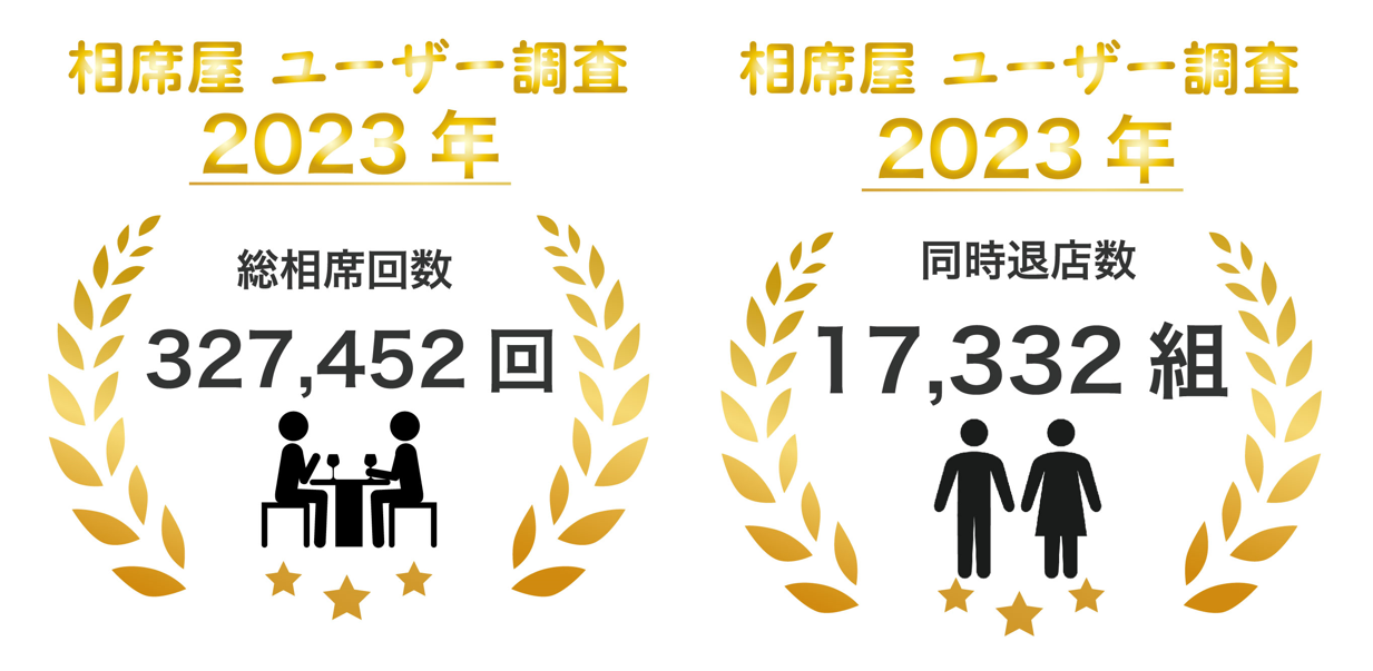 2023年1月の相席屋は、総相席回数327,452回、総同時退店数17,332組を突破いたしました。(2021年度〜2023年1月までの合計数)