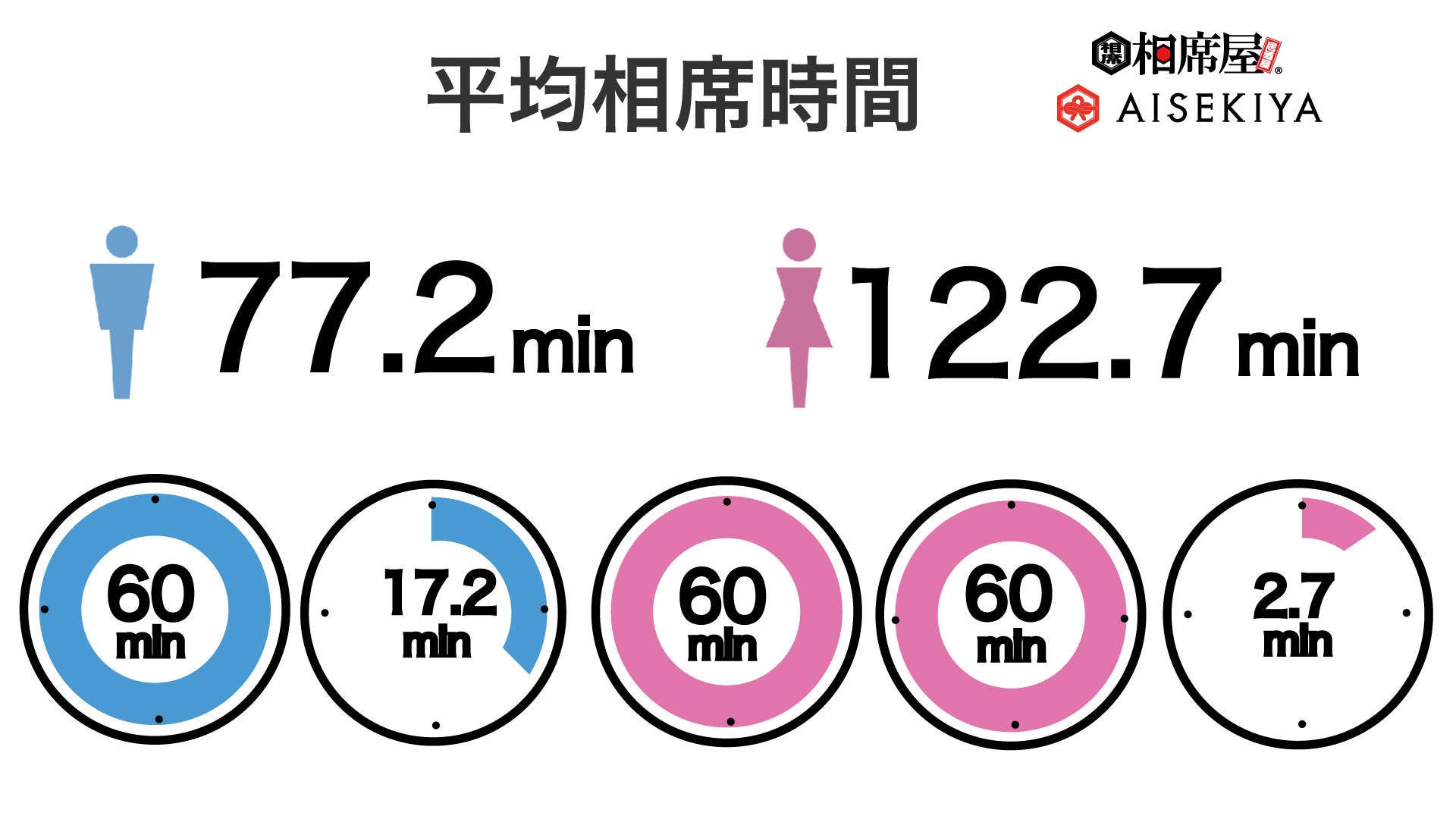 2023年1月の相席屋平均相席時間は男性は77.2分、女性は122.7分となりました。