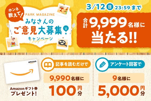 今回の『ホンネ教えて!PARK MAGAZINEみなさんのご意⾒⼤募集キャンペーン』は、読者のみなさまに“もっと”楽しんでいただけるPARK MAGAZINEの記事を制作するために実施するものです。