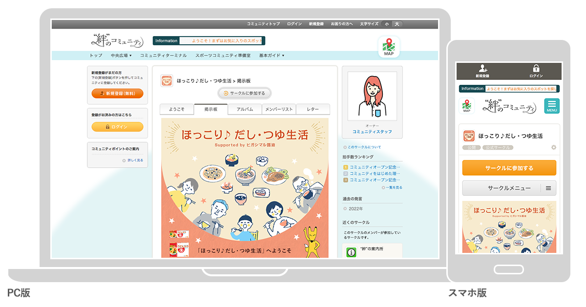 「ほっこり♪だし・つゆ生活」は、おだしやおつゆ、ヒガシマル醬油の「うどんスープ」がテーマのファンコミュニティです。日々の食生活や活用方法などに関するコミュニケーションを通して、おだしやおつゆ、「うどんスープ」を深く知ったり、毎日の料理の中でより活用できるようになります。