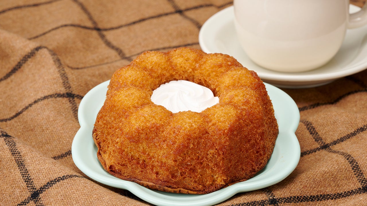 直径約11cm、高さ約3.5cmと手のひらサイズに焼き上げた、ローソンストア100オリジナルの「グーゲルフップフ」は、ちょっぴり贅沢なおやつとしてひとりで楽しむことも、切り分けてシェアしてもお楽しみいただけます。