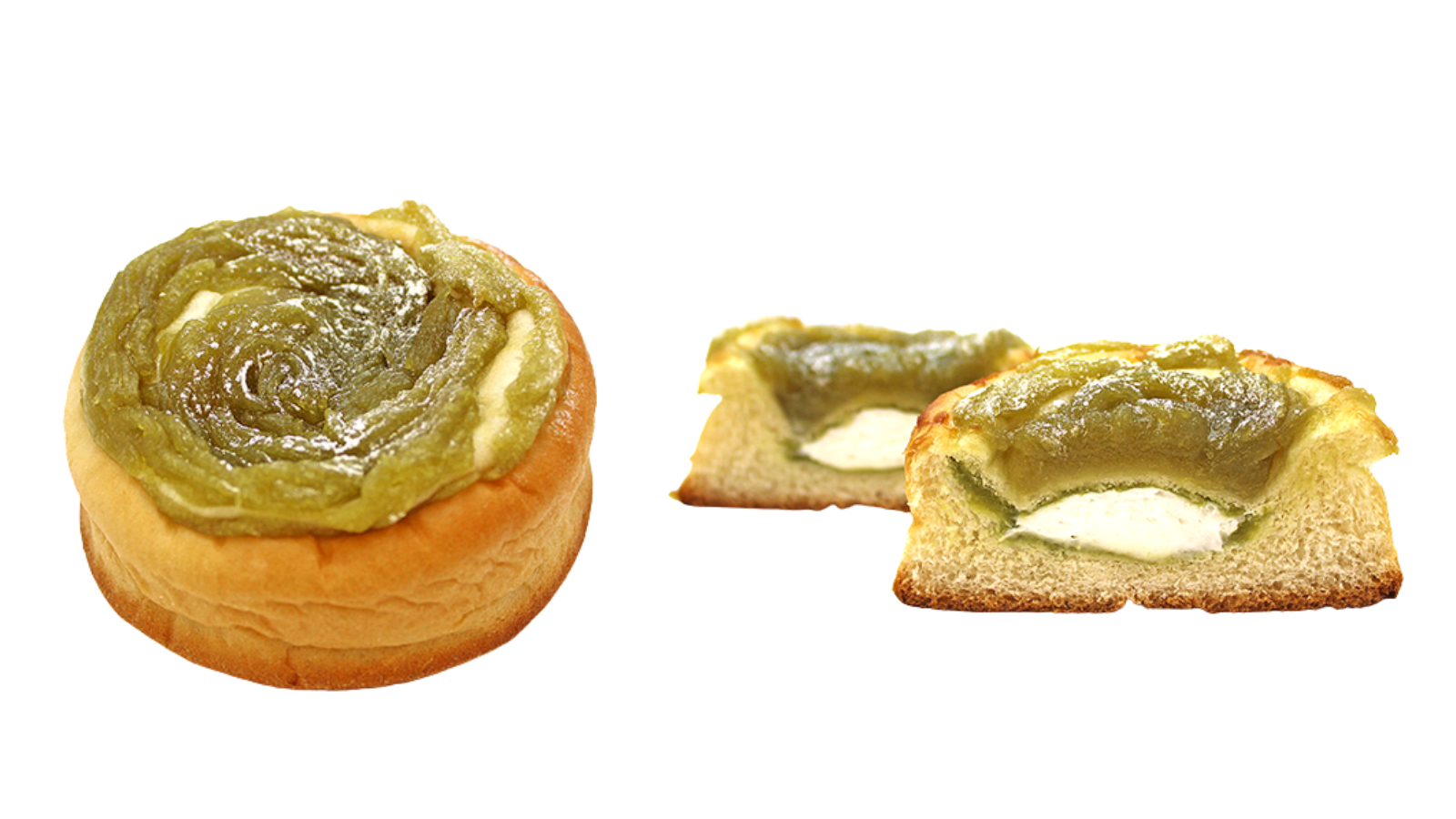 宇治抹茶クリームとホイップクリームを包んだ生地に、宇治抹茶あんをぐるぐるとモンブラン風にトッピングしました。春にぴったりな『宇治抹茶』を見た目と味わいで楽しめます。
