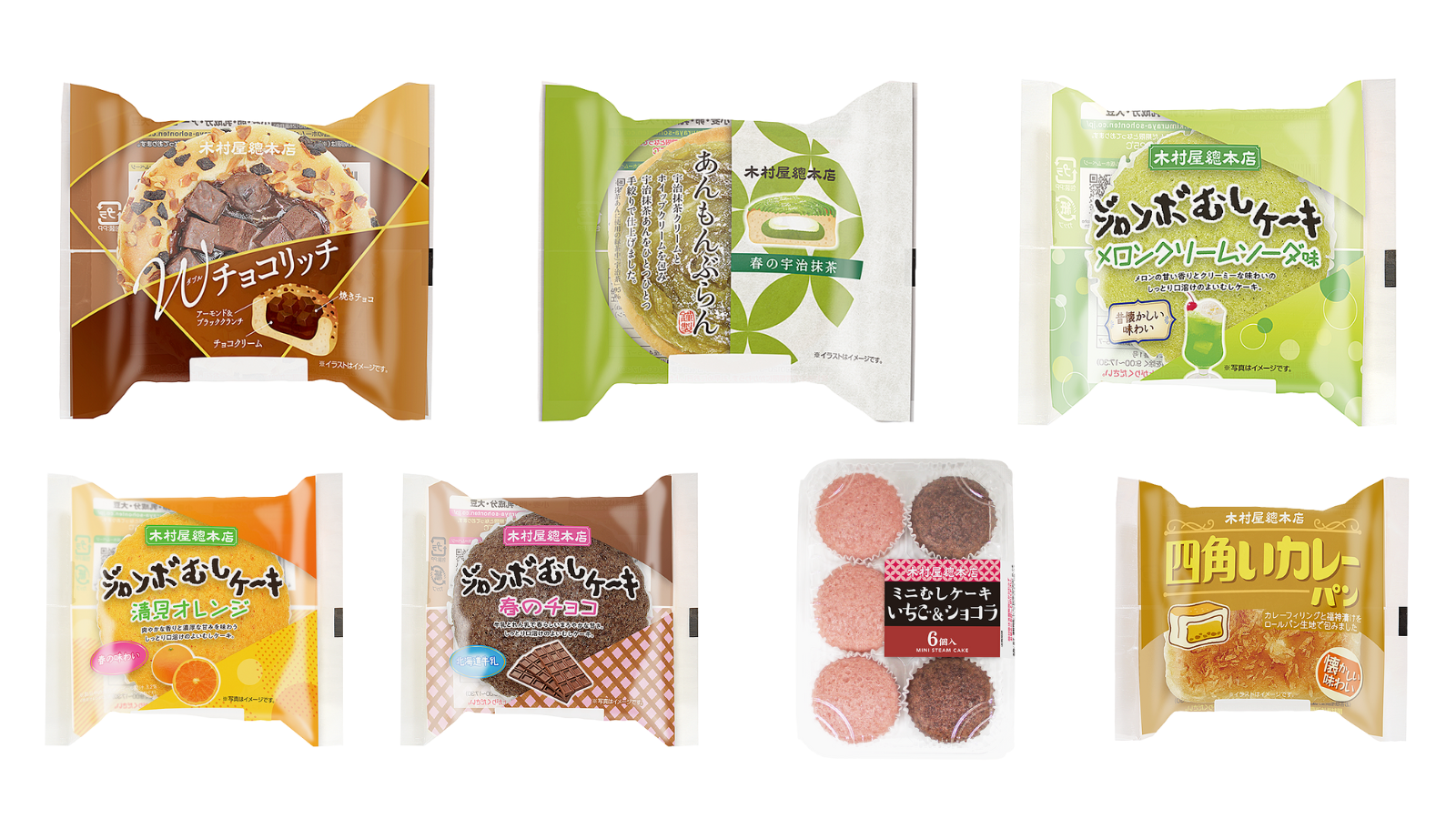 3月の新商品は見た目と食感にこだわった商品が登場。「あんもんぶらん 春の宇治抹茶」は春の『抹茶』を見た目と味わいで楽しむ一品。「Wチョコリッチ」は生地の上にダイスチョコをたっぷりとのせて焼き上げ、ブラッククランチ入りアーモンドで見た目と食感にアクセントを加えました。ジャンボむしケーキからは「メロンクリームソーダ味」「清見オレンジ」「春のチョコ」の3種類が登場。「メロンクリームソーダ味」は昔懐かしい味わいを完全再現しました。「ミニむしケーキいちご&ショコラ」はミニサイズでもしっかりといちごの甘酸っぱさを感じられる仕立てにしました。惣菜パンからは懐かしい味わいの「四角いカレーパン」が登場、福神漬けを包んで丁寧に焼き上げました。