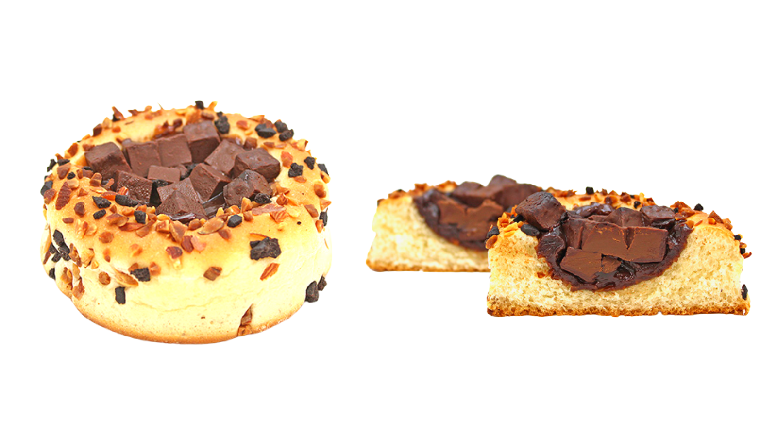 ビターなクリームとダイスチョコの食感で、チョコ感を存分に味わえるチョコパンです。