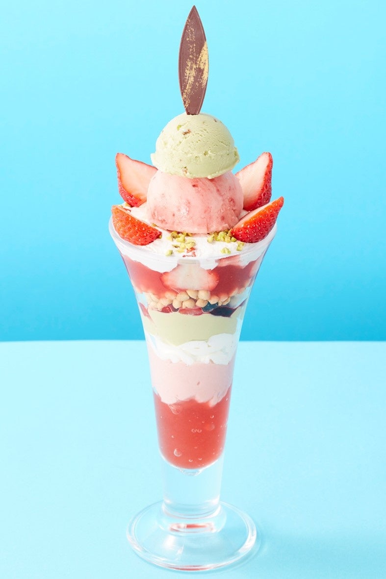 お客様の様々なシーンに寄り添えるよう、「いちごとピスタチオのグラスパフェ」「いちごとピスタチオのアイス」をご用意しました。食後やティータイムにぴったりなサイズのデザートで、“いちご×ピスタチオ”のマリアージュをお手軽にご堪能いただけます。