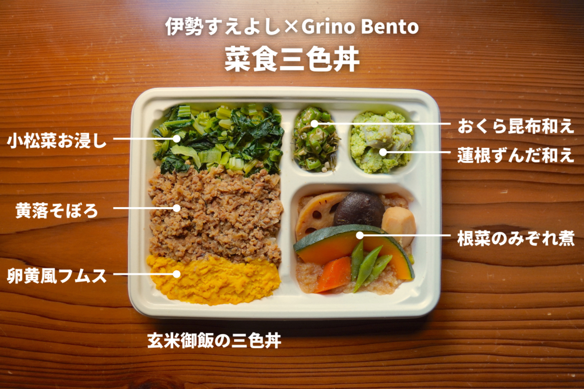 - 伊勢すえよし×Grino コラボ弁当 Grino Bento 菜食三色丼