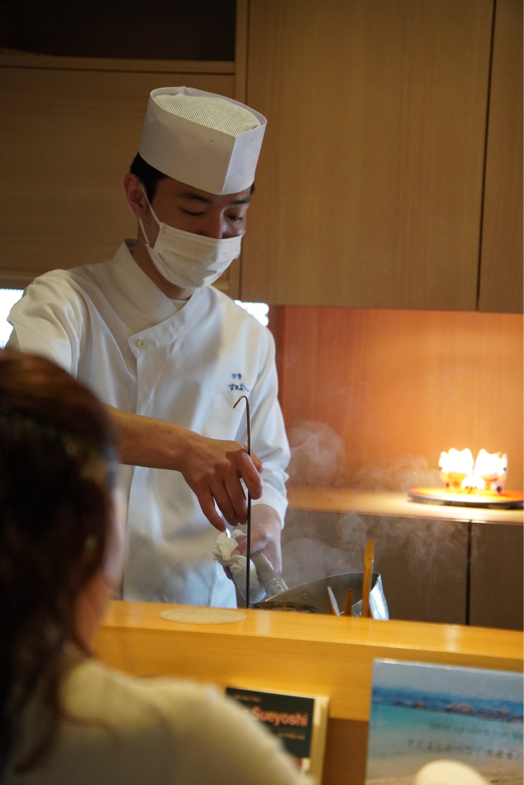 2021年 「サステナブル板前」と名乗る 地球と人間の共存のために、伊勢すえよしでは定期的に精進出汁・植物性食材のみで構成されたヴィーガン懐石コースの日も作っている