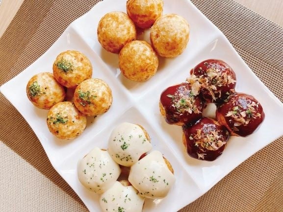 生タコから作るこだわりのたこ焼きが人気の同店。今催事では、バリエーション豊富なメニューをそろえる同店の味を少量ずつ楽しめるセットが登場。王道の甘口タイプの「赤鬼ソース」、チーズフォンデュのようなとろとろとした「チーズ」、たこ焼き本来の味が引き立つシンプルな「岩塩」、あっさりとした味わいの「だし醤油」を食べ比べできます。
