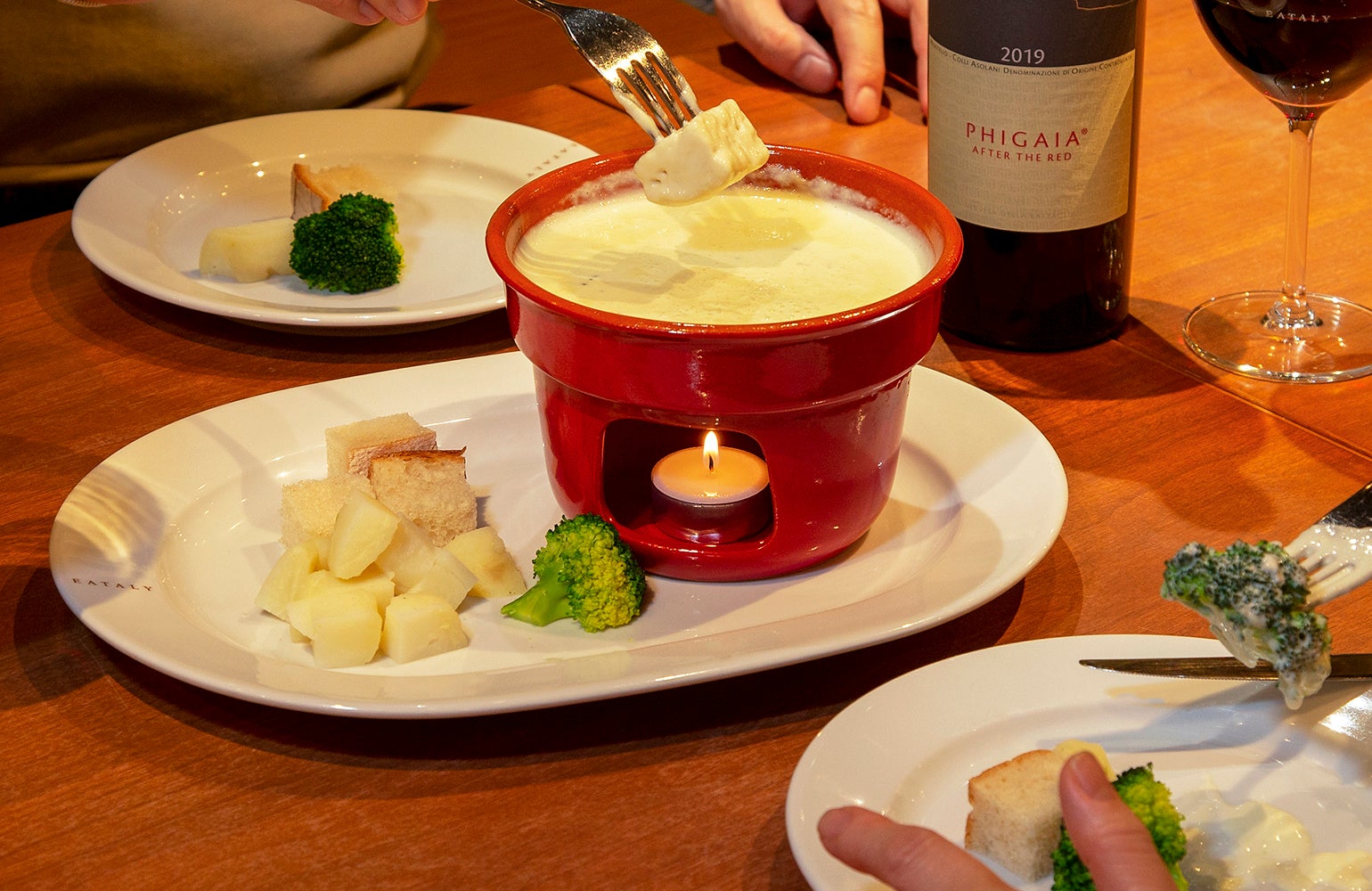 冬の寒い時期に囲みたくなる温かいチーズ料理。イータリーのレストランで提供している「フォンドゥータ・アイ・クワットロ・フォルマッジ(4種のチーズを使ったフォンドゥータ)¥1,480」をご自宅でも。