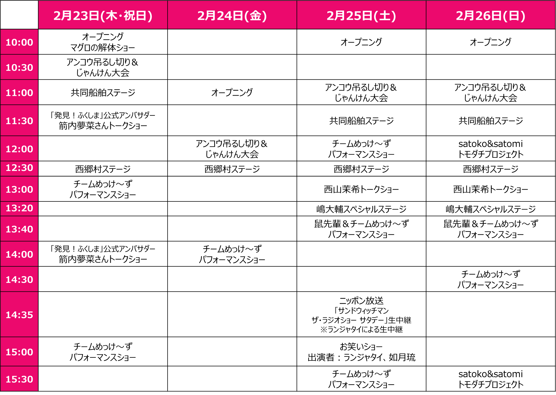 - アンコウの吊るし切りやトークショーなどバラエティ豊かなステージイベントが盛りだくさん