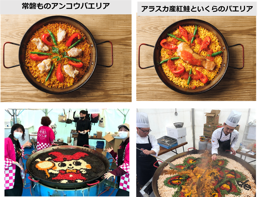 - 常磐ものアンコウ&アラスカ産紅鮭といくらパエリア大試食会 2つの巨大鍋で計400人前を調理 先着無料でご提供