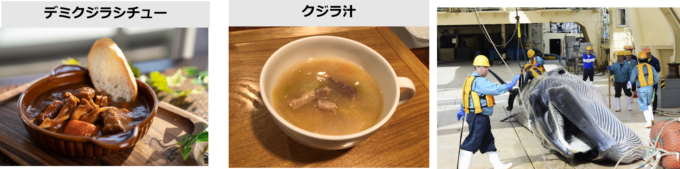 商業捕鯨を手掛ける共同船舶が、クジラの消費拡大と鯨食文化の振興を目的に魚ジャパンフェスに出店します。鯨肉は、疲労回復に効果のある栄養素のバレニンを豊富に含み、高タンパク低カロリーでヘルシーな食材です。 「デミクジラシチュー」は高級で希少な「須子(スノコ)」を使い、トマトの酸味とバジルの香りを効かせたデミグラススープ。 「クジラ汁」は、高級希少部位の「舌(サエズリ)」を具材に使ったクジラの脂の旨味を存分に味わえる味噌スープ。ぜひこの機会に、めったに味わえないクジラの高級希少部位を体感してください。