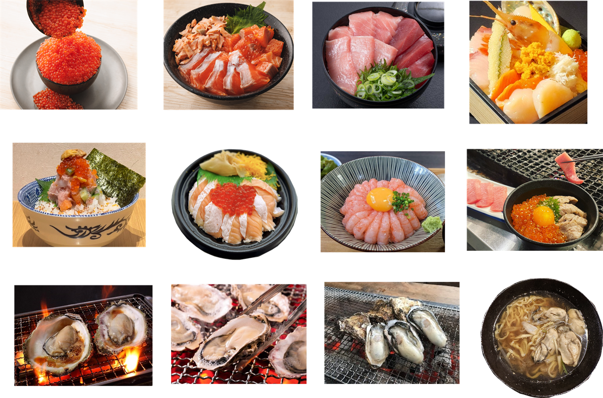 マグロ、サーモン、イクラ、ウニ、カニ、カキなどの魚介が大集合。海鮮丼や漁師飯、鍋料理、海鮮ラーメン、海鮮パエリアなど和洋中が勢ぞろい。過去最大の約80ブースが出店します。