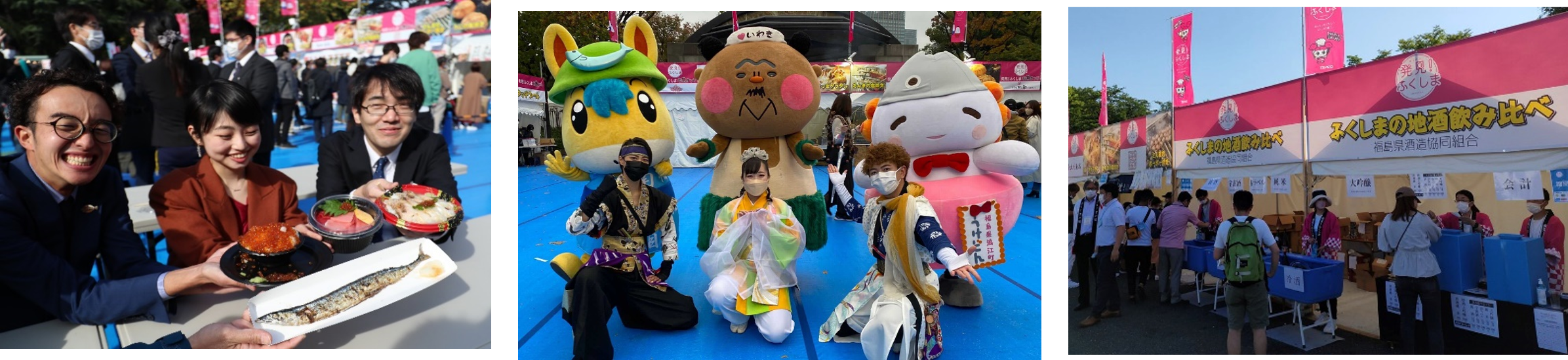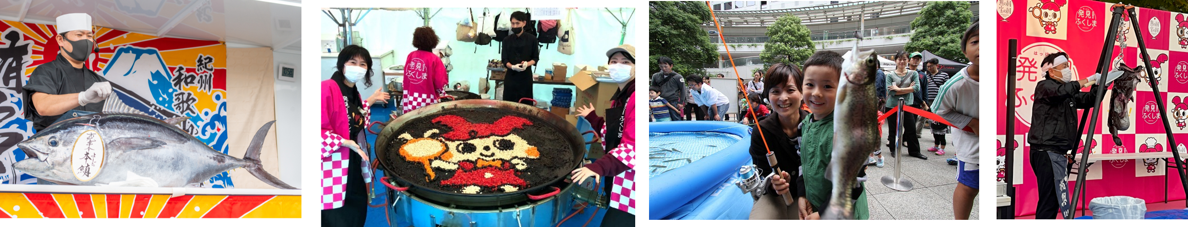 親潮と黒潮がぶつかる福島県沖の海域は、「常磐もの」と呼ばれるおいしい魚介類の宝庫です。東日本大震災から12年を迎える福島の漁業・水産業の復興応援を目的に、昨年11月の 「ジャパン フィッシャーマンズ フェスティバル」と同様に、「発見!ふくしまお魚まつり」を同時開催します。福島各地の旬で新鮮な魚介を使った「ふくしまご当地海鮮丼」のほか、うに貝焼きやさんまのポーポー焼き、ほっき飯などの郷土料理、アンコウのパエリアや魚介出汁のラーメンをご用意。福島の地酒やワインもお楽しみいただけます。おいしく食べて福島を応援してください。