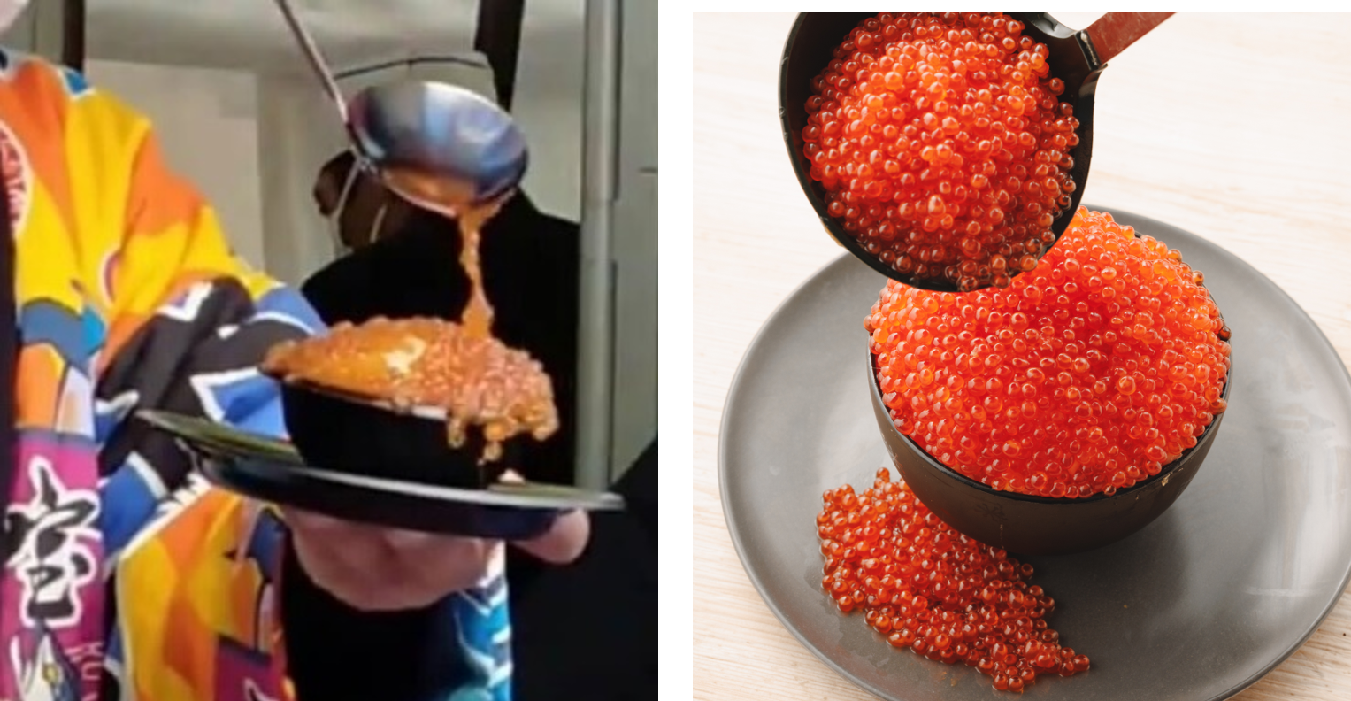 - ルビー色に輝くアラスカ産紅鮭のいくらがこぼれます!おいしくてサステイナブル