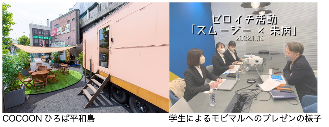2022年8月26日より、京急電鉄、東京都大田区、日本工学院専門学校、モビマルが産官学連携で、キッチンカー、シェアスペース/オフィス、モビリティステーション、地域イベントスペースなどで構成される交流拠点「COCOONひろば平和島」を運営。その中で、モビマルは、キッチンカーの運営を行っています。