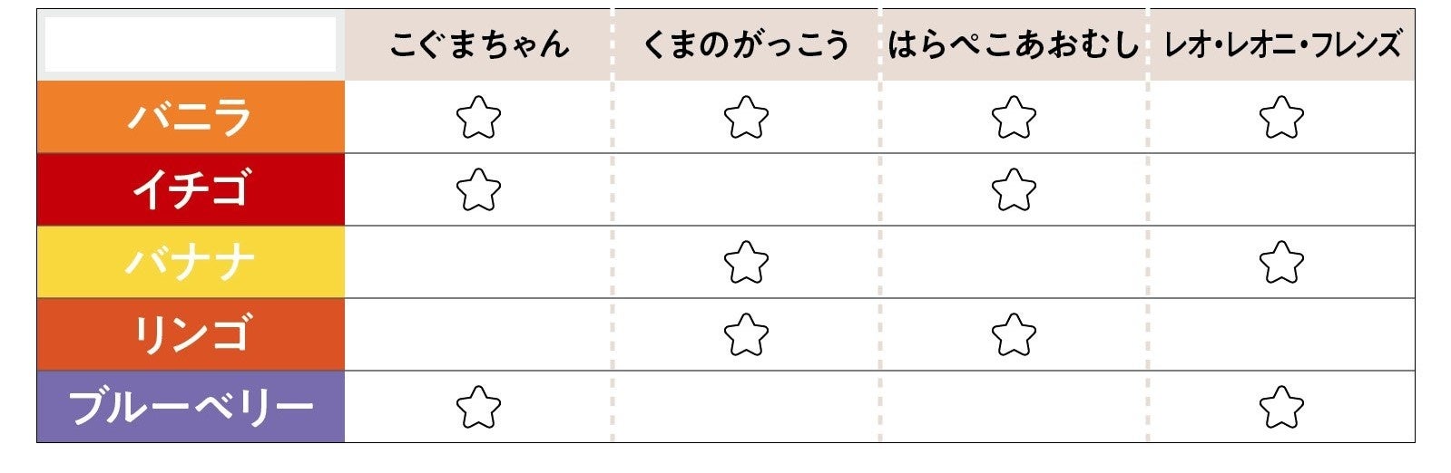 大人も子どもも食べることが楽しみになるように、通常のバニラ味に加え、バナナ味、リンゴ味、イチゴ味、ブルーベリー味と味のバリエーションを豊富にしています。