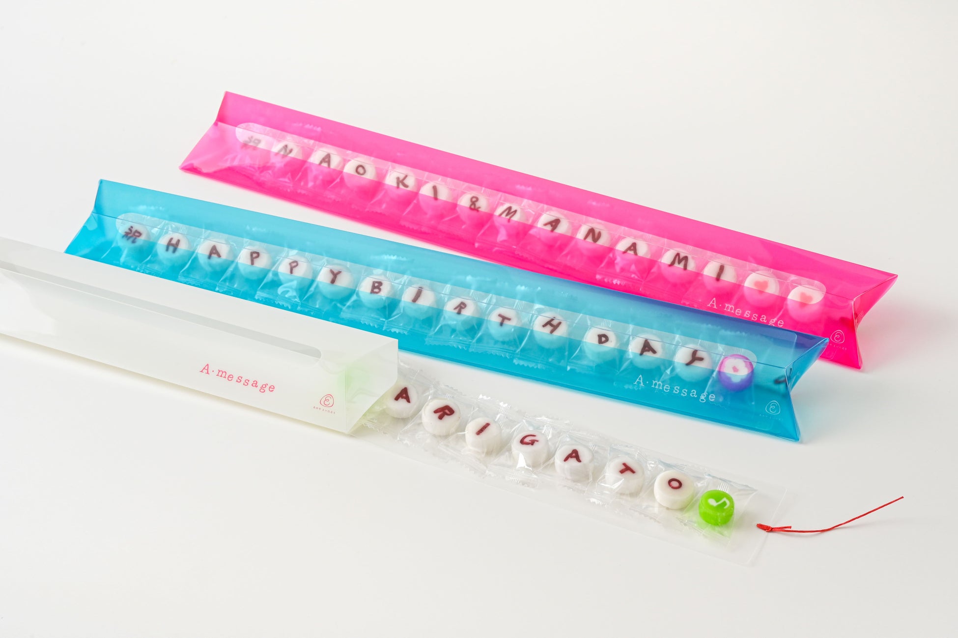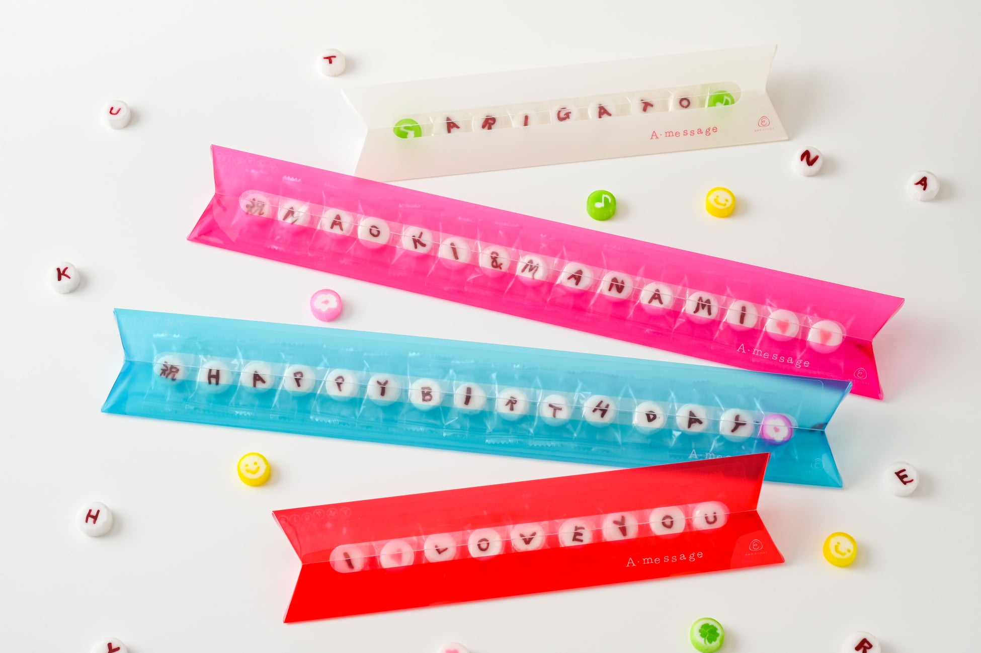 A~Zのアルファベットと絵文字の「あめ」を組み合わせ、9文字・15文字でお好みのメッセージを作ることが出来る商品です。