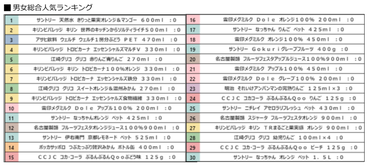 - 【男女総合・購買ランキング】果汁飲料の総合ランキング(TOP30)