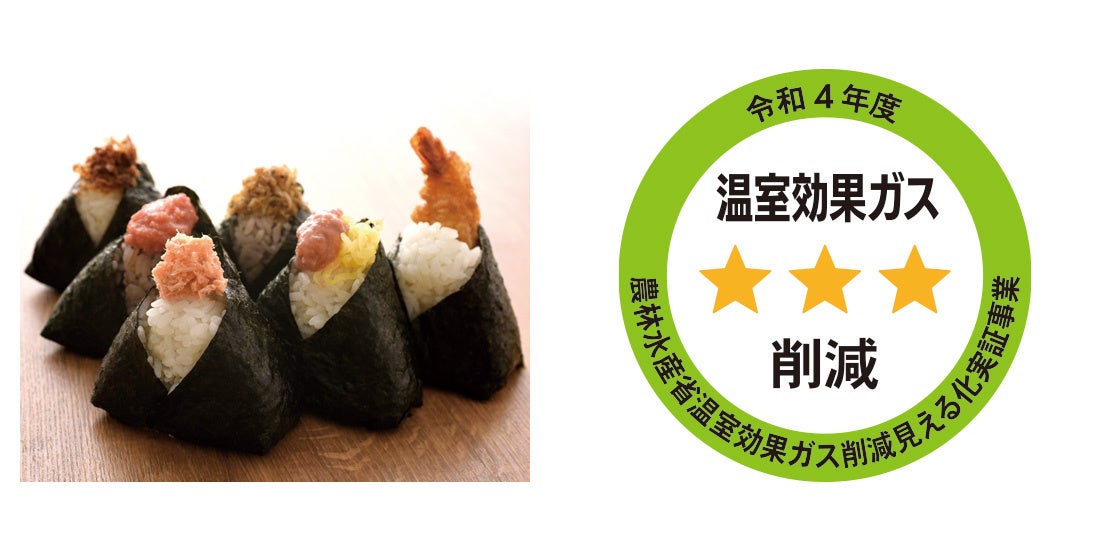 同省は消費者が地球環境に良い農産物を選択できるよう、温室効果ガス削減効果を星の数で表示(見える化)しており、同店が使用している宮城県登米市の『環境保全米』は星3※を獲得しています。チラシ・ポスター・公式Twitter等を通じて温室効果ガス削減が見える化されたおむすびであることを訴求することで、お客様への持続可能な食料システム構築への理解を醸成してまいります。