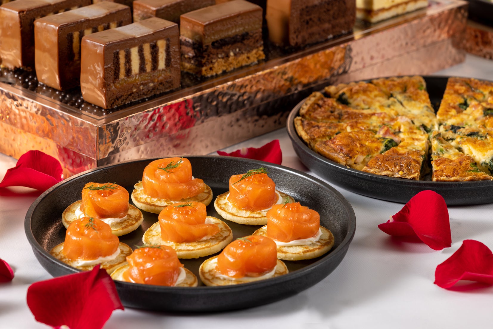 セイボリーには、「フレンチ キッチン」で人気の定番メニューをセレクトいたしました。ホテルメイドのパンドミをホテルオリジナルの卵液にじっくり一晩漬け込んだ「フレンチトースト」や、軽食としても人気の「クロックムッシュ」のほか、厚切りの自家製スモークサーモンが嬉しい「ブリニ」など計5種類が並びます。