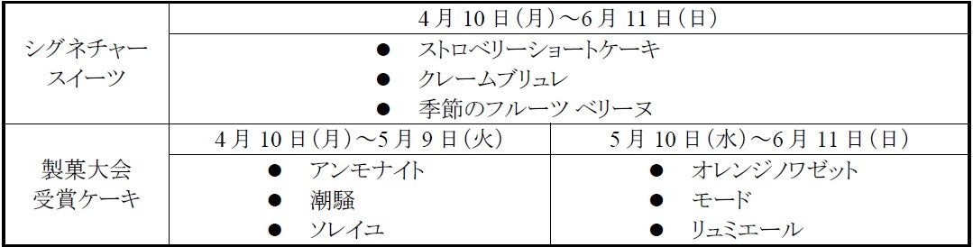 | 世界の製菓大会で受賞を果たしたケーキ (提供期間順) |