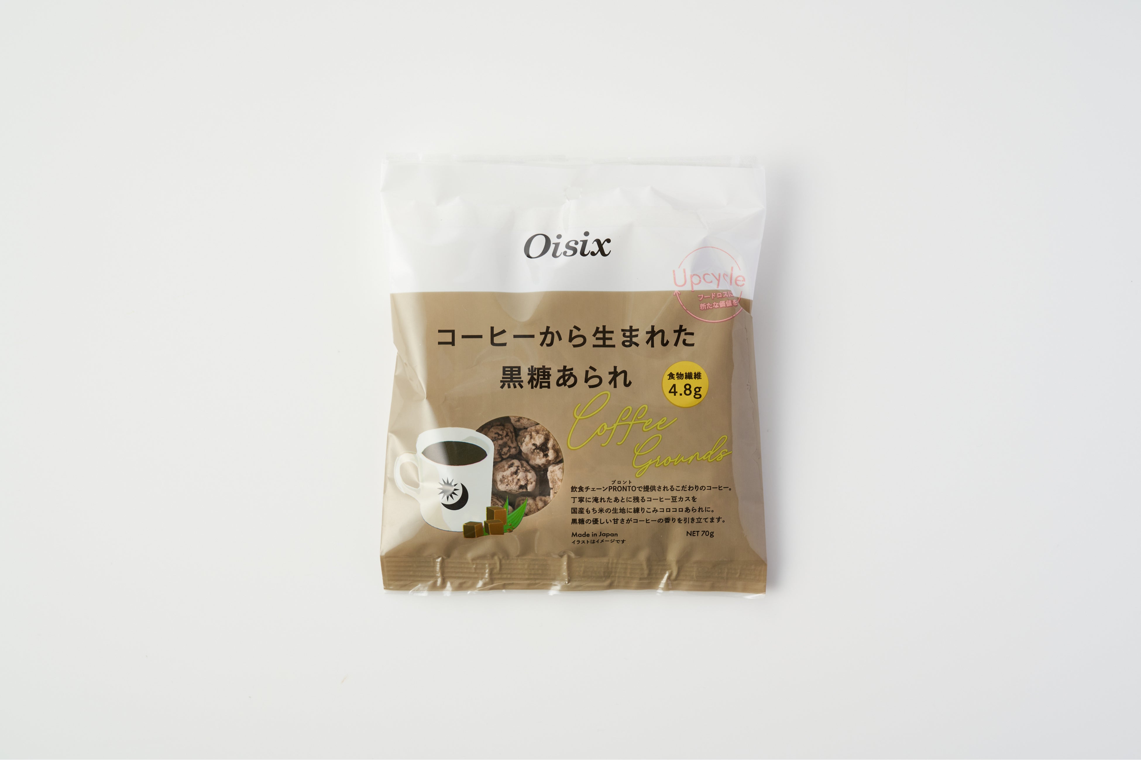 黒糖あられ:1袋70g(コーヒーグラウンズ15g・食物繊維4.8gを含む)