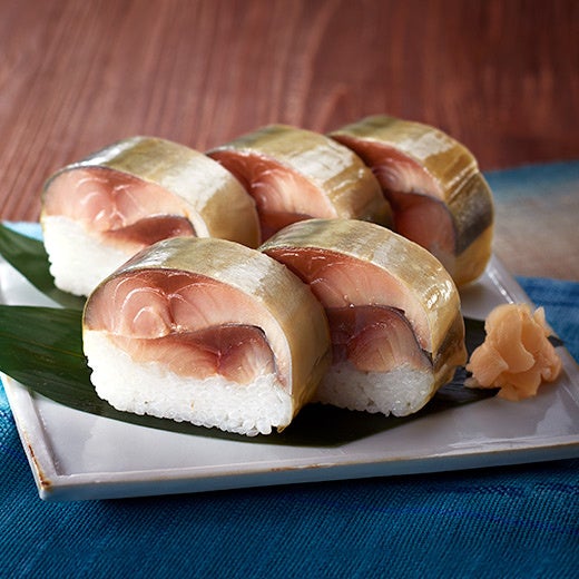 長崎県五島近海で水揚げされた新鮮な真鯖を、独自製法の旨酢に漬け込み鮨飯で巻きました。浅〆なので鯖本来の美味しさがぐっと引き立ちます。