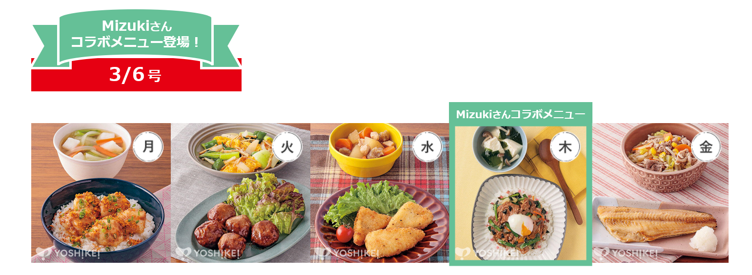 つくる人から笑顔に。をテーマに全国でミールキット宅配サービスを提供するヨシケイグループ(本部所在地:静岡県静岡市 / 代表取締役:井野口 雄一)は、昨秋に販売した料理研究家Mizukiさんとのコラボメニューを、メニューブック「すまいるごはん」3/6号にて再販します。
