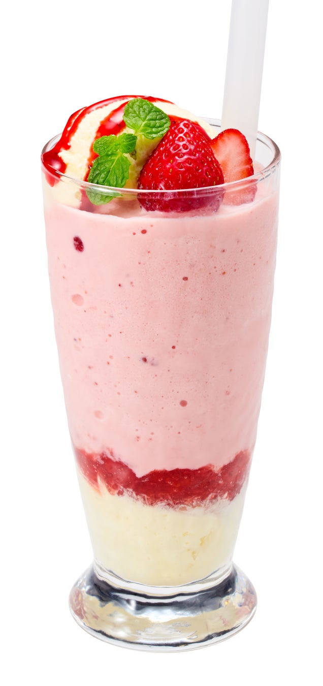 苺のフローズンドリンクにふんわりムースとストロベリーソースを合わせ、フレッシュな苺をのせました。
