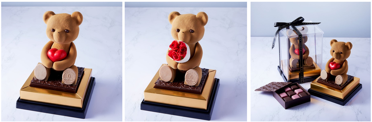 大人気のヌヌースシリーズは、そのまま飾っておきたくなるほど可愛らしいテディベアのチョコレート。板チョコをかじった食いしん坊のヌヌースはもちろん、ヌヌースが座っているショコラボックス、ショコラボックスに隠されたギモーヴショコラもルビーチョコレートでご用意いたしました。