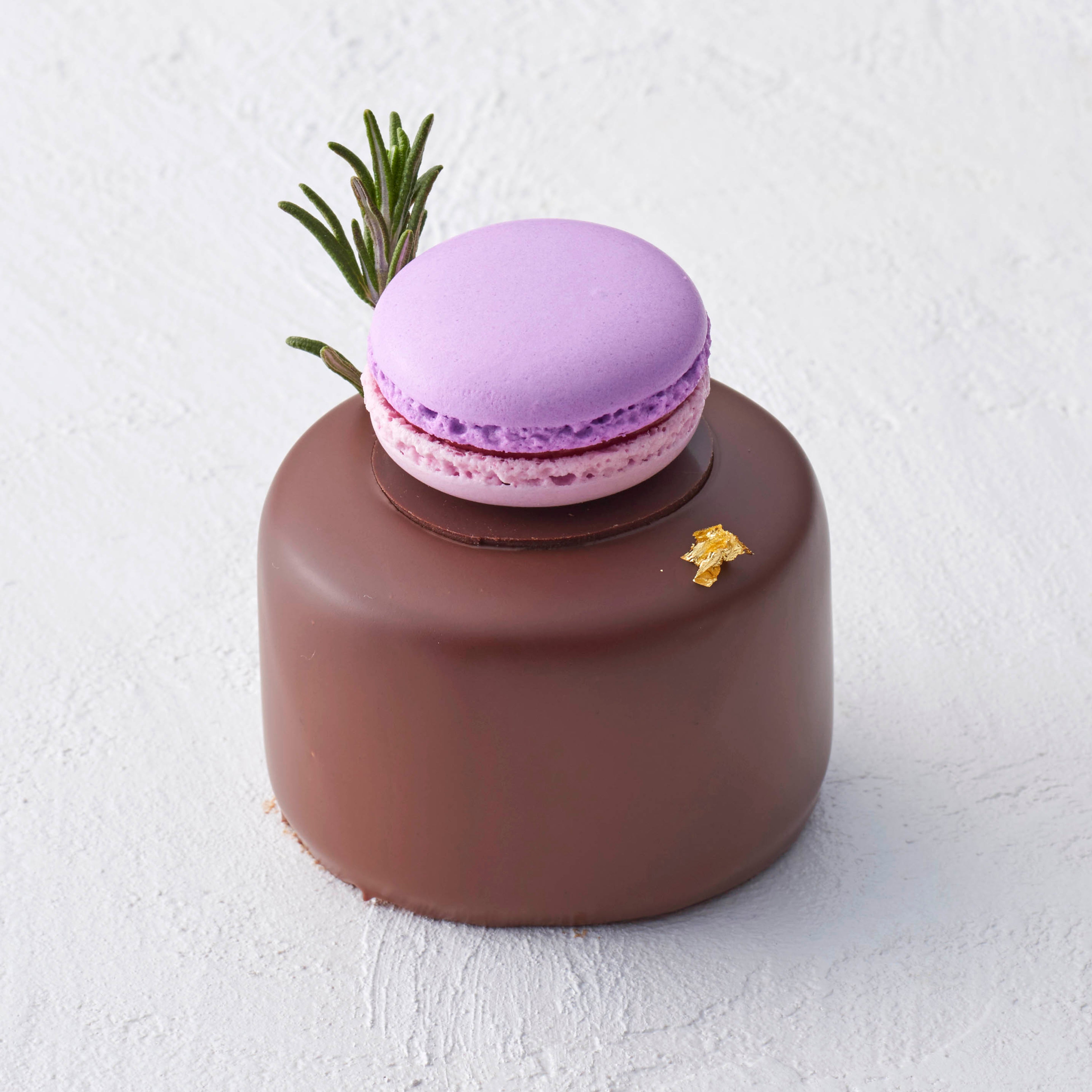 すみれの香りがふわりと香るショコラムースのケーキ。すみれとベリーのムース、ジュレをなめらかな口どけのショコラムースで包みました。