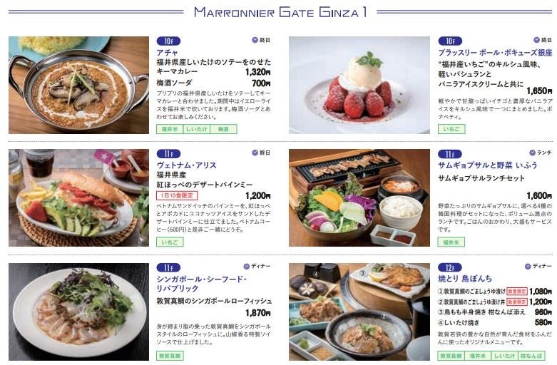 銀座の商業施設、「マロニエゲート銀座1」(マロニエゲート銀座1;東京都中央区銀座2-2-14 運営会社:三菱地所プロパティマネジメント株式会社)では、2月23日(木・祝)~3月6日(月)まで『敦賀若狭フェア』を開催します。
