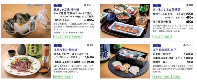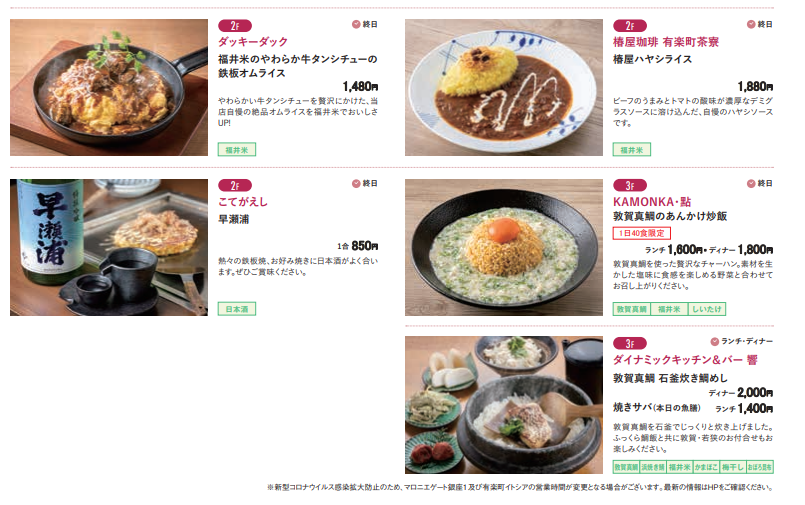マロニエゲート銀座1と有楽町イトシアが、福井県敦賀若狭の海の幸や山の幸の風味を活かした特別メニューをご用意しました。若狭湾に面した港町、のどかな田園や里山の風景を感じさせる絶品メニューをぜひご賞味ください。