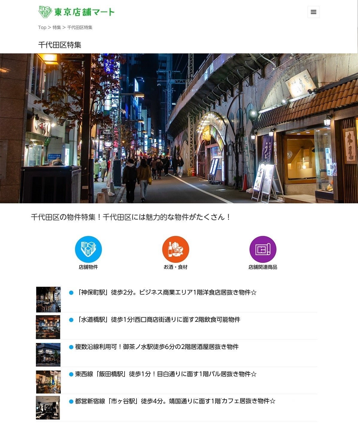 店舗物件、食材・酒類の仕入れ業者、その他関連業など、東京23区内のあらゆる店舗関連業者の情報をワンストップで提供
