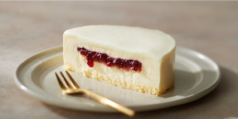 ホワイトチョコレートの上品な甘みに、チーズのコク、グリオットチェリーの甘酸っぱさが重なって生まれたチーズケーキです。