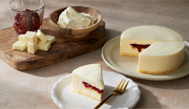 ホワイトチョコレート×チーズ×グリオットチェリーの三重奏が楽しめるチーズケーキです。