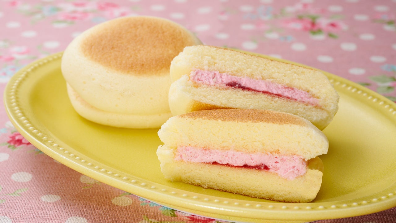 あまおういちごクリームとあまおういちごジャムをふわふわ食感のスフレケーキでサンドしました。2個入です。