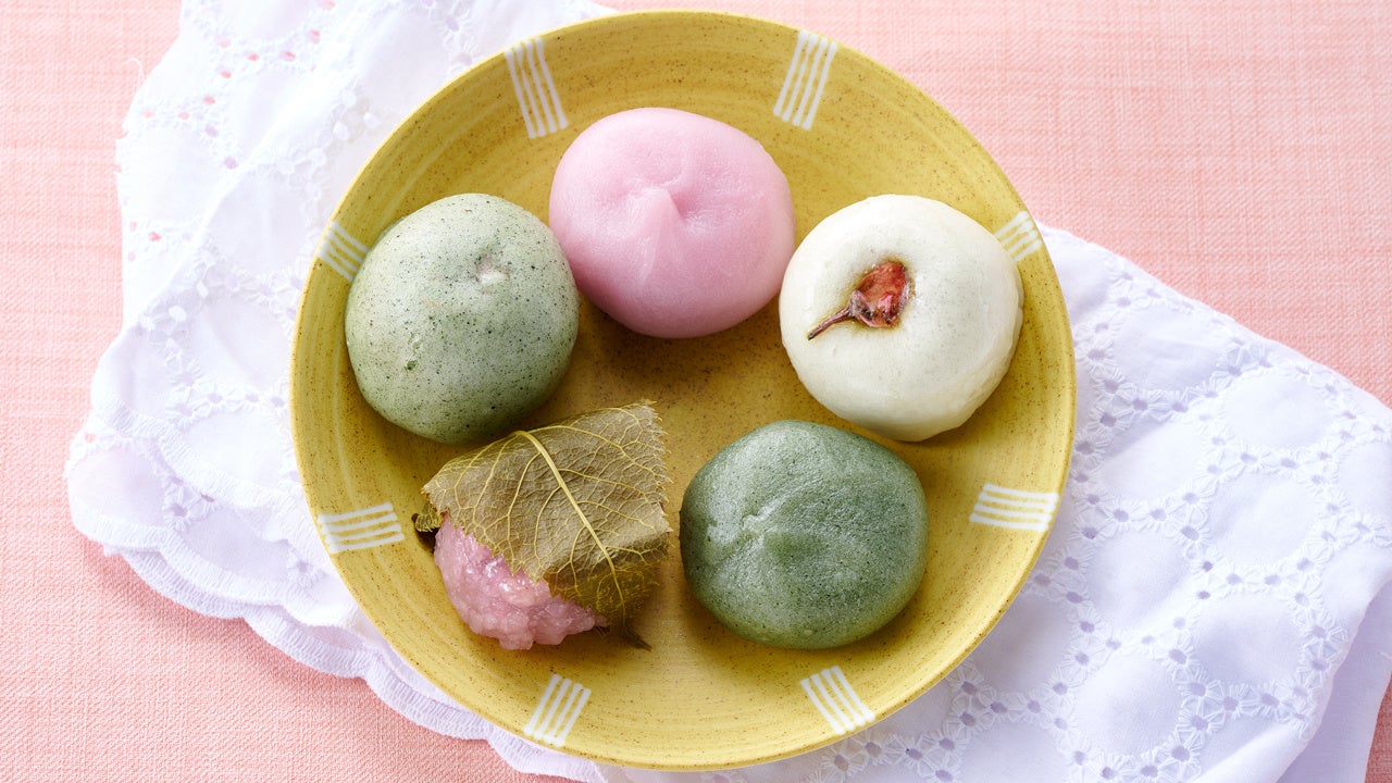 道明寺、よもぎ饅頭、桜田舎饅頭、粒餡入りの草餅、桜色団子の5種詰め合わせです。春を彩る和菓子アソート商品(5個入)です。