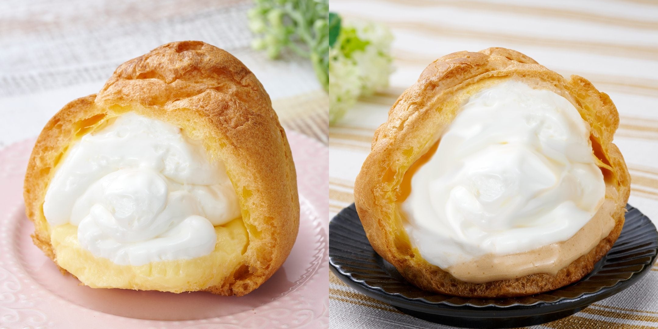 写真左:ツインシュー(カスタード&ホイップ) 写真右:ツインシュー(キャラメルクリーム&ホイップ)